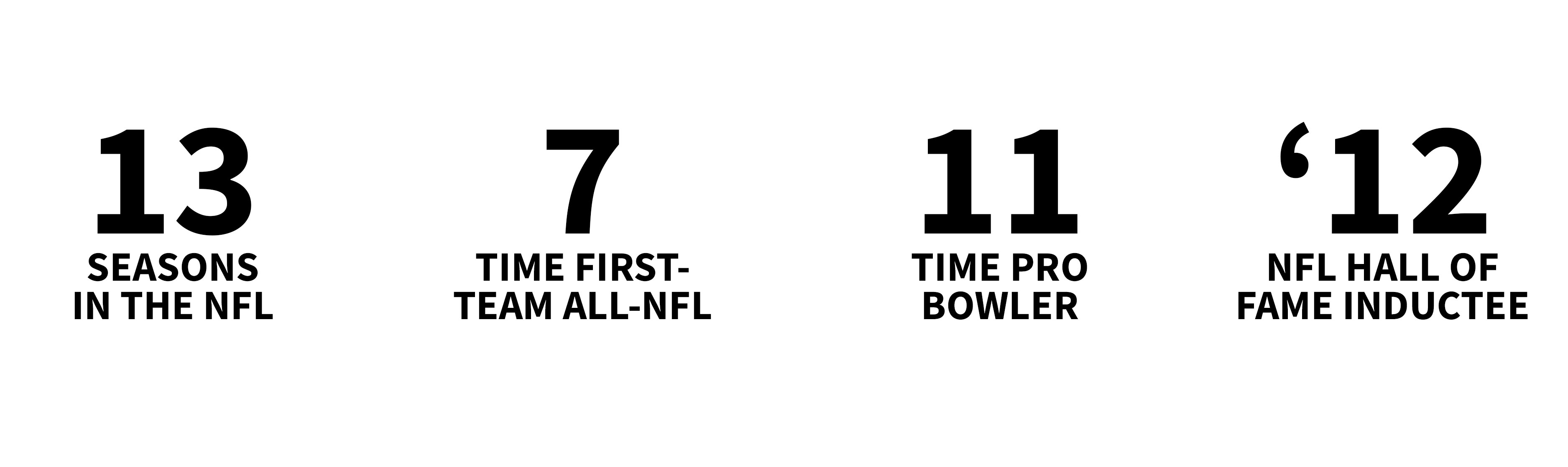 One of the best offensive linemen to play professional football, Roaf was named first-team All-NFL seven times and was voted to the NFL Pro Bowl 11 of his 13 seasons. In 2012, Willie was inducted into the NFL Hall of Fame. He is one of only 346 players in the NFL’s 100 year history to receive such a prestigious honor.